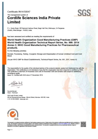 Internationally recognized and accepted accreditations ensure that the company has been assessed by independent peer experts for having the competence, reliability, operational performance and quality management of the processing and cryopreservation protocols to ensure patient safety at the time of transplant.
